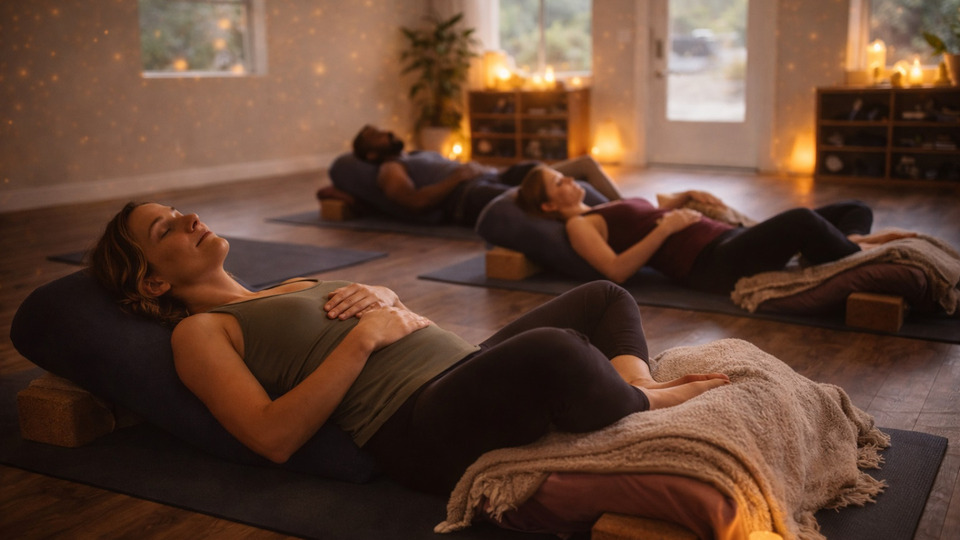 This class combines the gentle, meditative qualities of yin and restorative yoga poses with the profound relaxation of pranayama, yoga nidra meditation, and sound healing during savasana.
